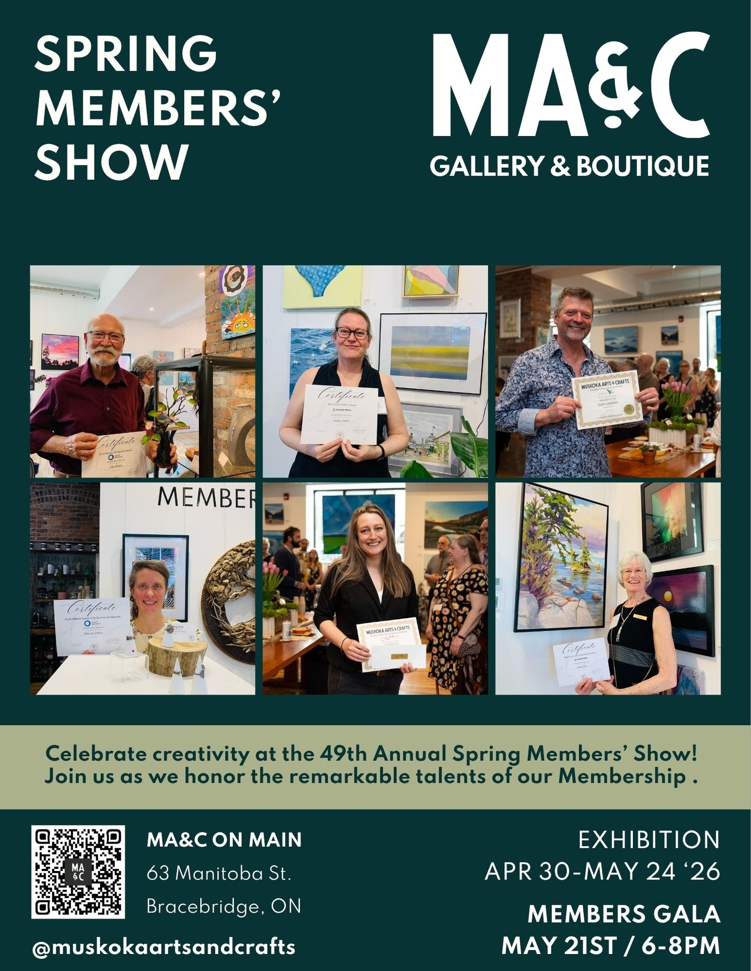 Muskoka Arts & Crafts, founded in 1963, is one of Ontario’s oldest and most established arts organizations. For over 60 years, we’ve brought together a vibrant community of professional artists, part-time makers, hobbyists, amateurs, patrons, and art enthusiasts—creating a dynamic space where creativity thrives and inspiration is shared. MA&C Is also know for their annual iconic summer show which attracts over 10,000 visitors each summer.