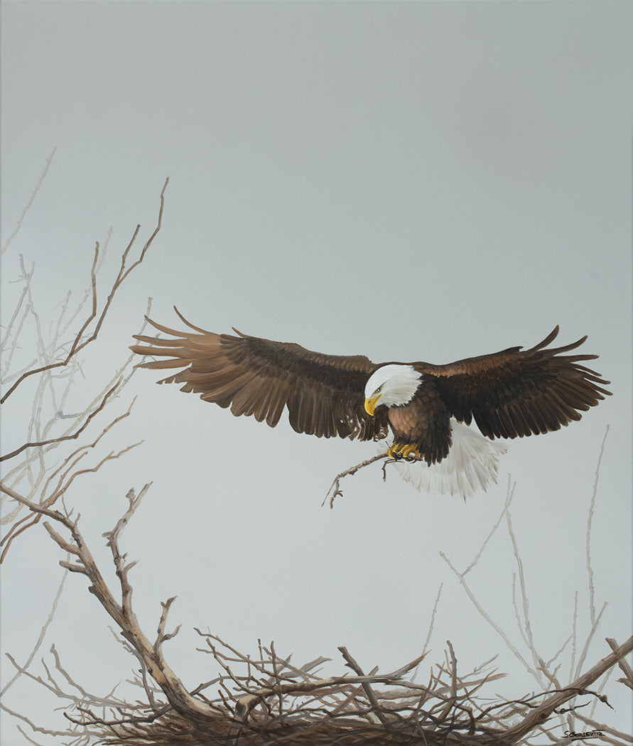 This is one of my series of bald eagles.Painted in acrylic on canvas beautifully framed in a hardwood frame ready to hang. 36"x30"