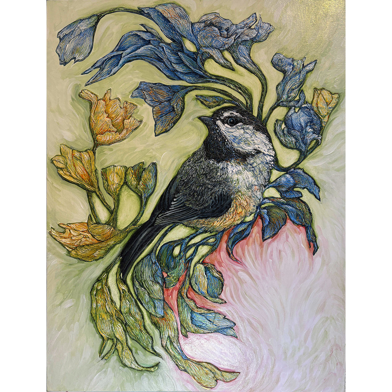 Medium: Pen and Ink on Sculpted and Cut Paper, acrylic on panel