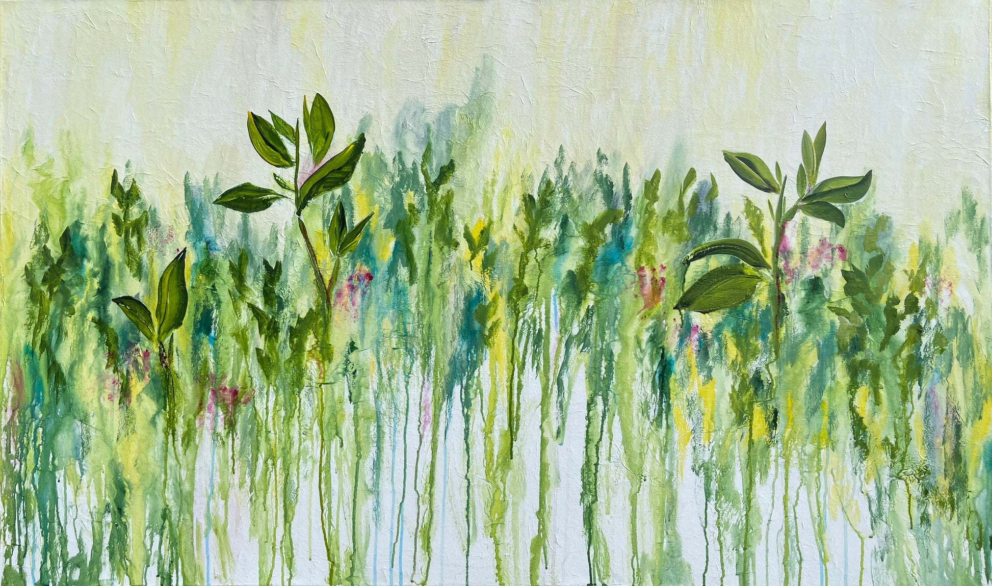 These Uplifting leaves were painted during a residency in Orquevaux France. The name translates to mean in 7th heaven in other words very happy. Painting in France every day!