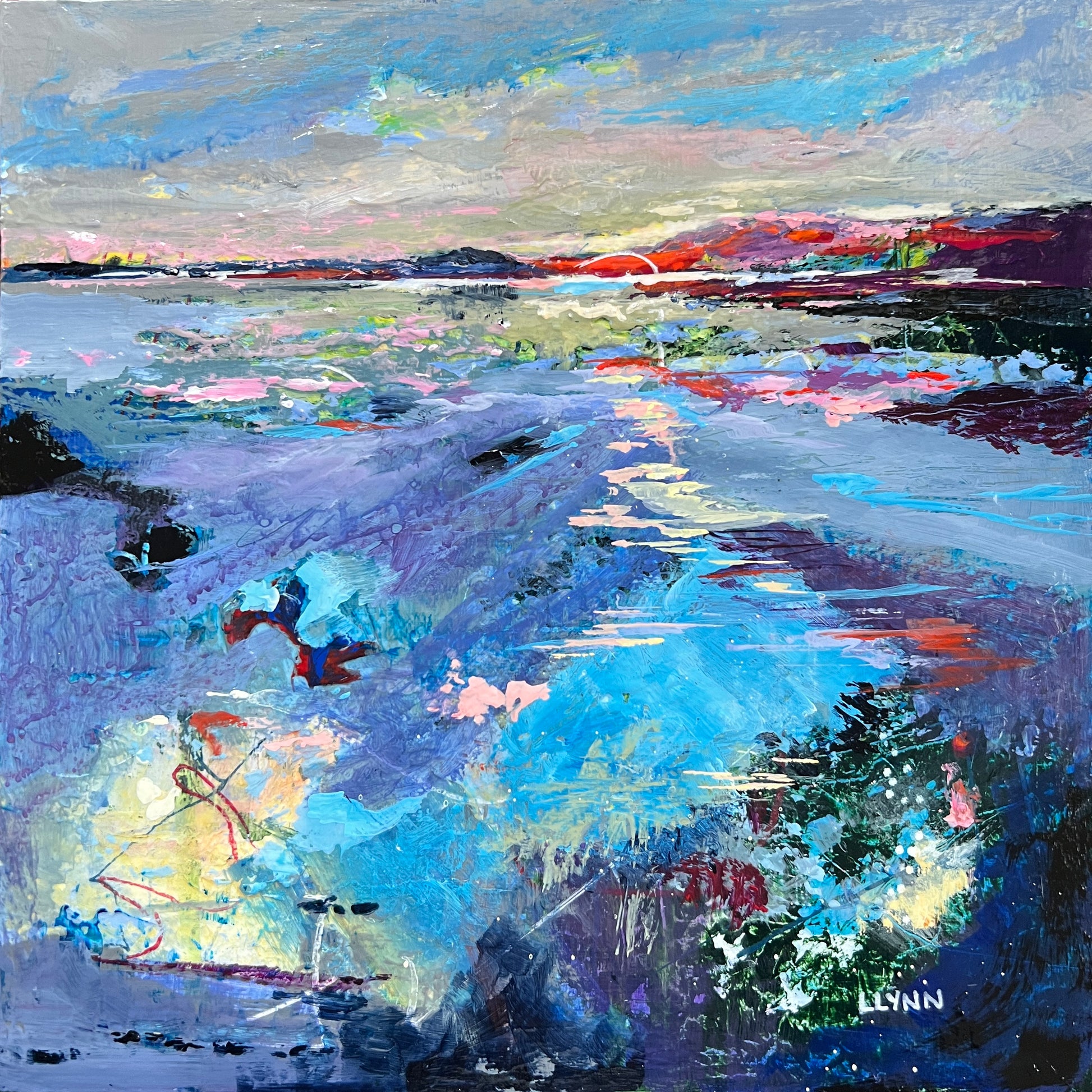 The last light shines on far hills while I watch the reflections and shadows creep across the still water, listening to its gentle lap along the shore.