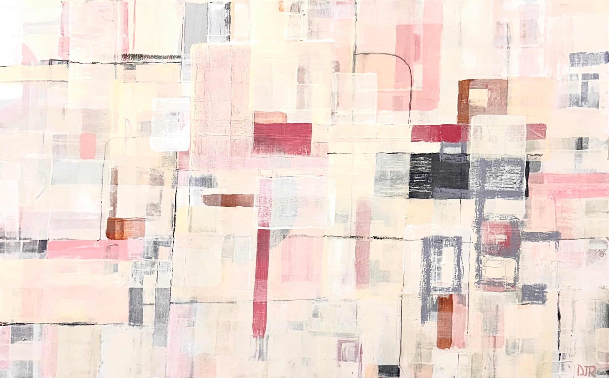 This larger painting captures the moment between when we sleep and the moments just before we fully wake up. It's a dreamlike feeling with depth and layers that flow from the palette knife and the movement of brushstrokes. The rich colours are soft and blurry. The smooth shapes indicate a moment in the dream, some darker than others, some lighter. With each layer of paint added and subtracted, the viewer is called to lean in and experience what lies below.