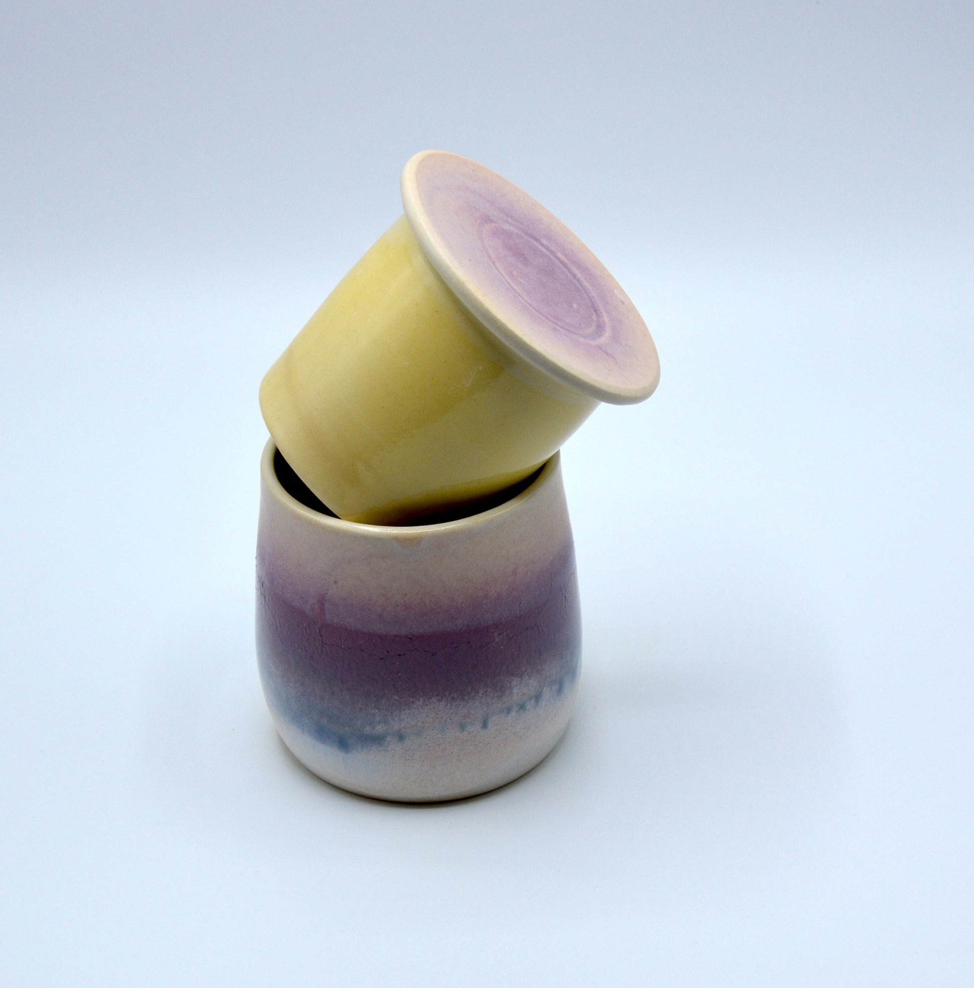 French butter keeper is a lidded vessel used to keep your butter fresh and at a perfect spreadable consistency outside of your refrigerator. The base holds the water and the top has a cavity for holding the butter. Available in Blue, Green and Pink