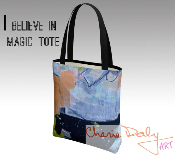 Basic tote bags feature printed artwork. 100% polyester textured canvas withstands everyday use while looking great. Made in Montreal by Art of Where. Size 16”h x 13”w x 3”d. I have had so many great comments about these totes. They make great gifts. They carry books or groceries or just your wallet. I’ve been using mine for years and it still looks great.