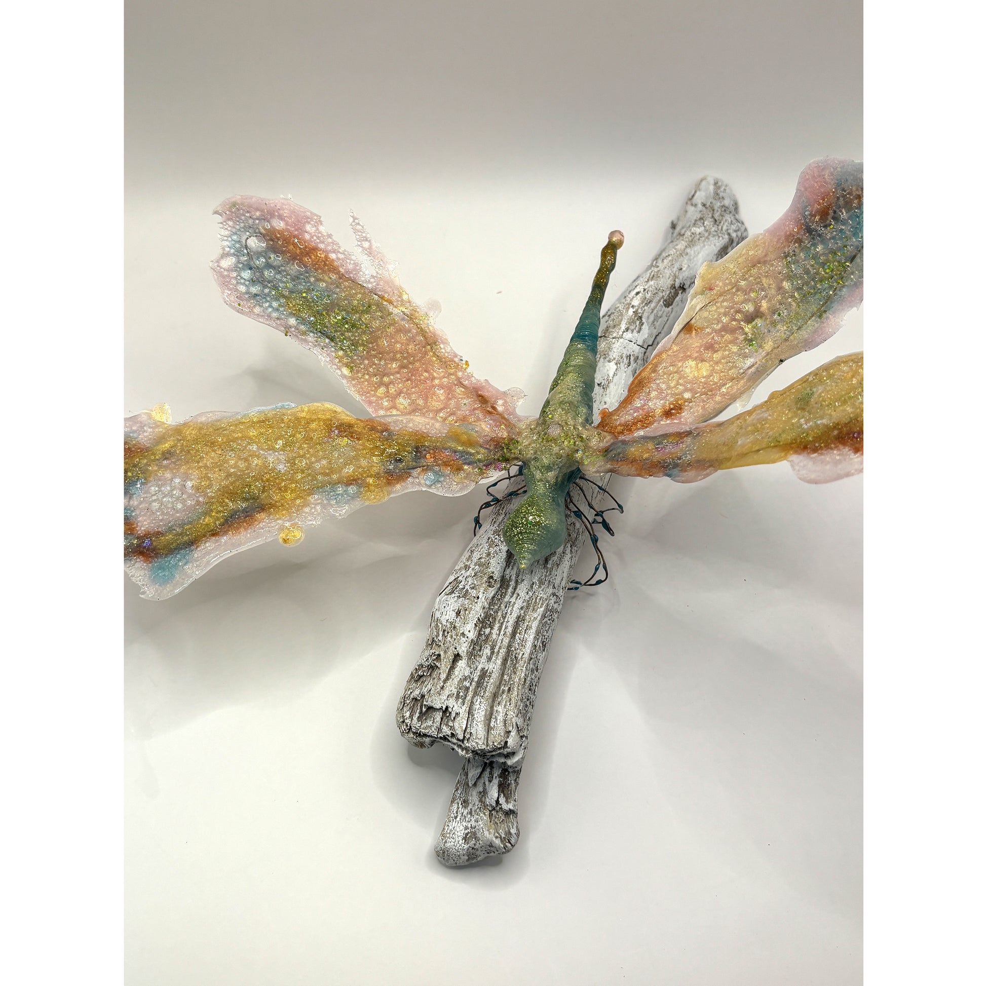 Medium: Resin, resin shells, wire, pink glass, glass bead, acrylic, mica powders, driftwood