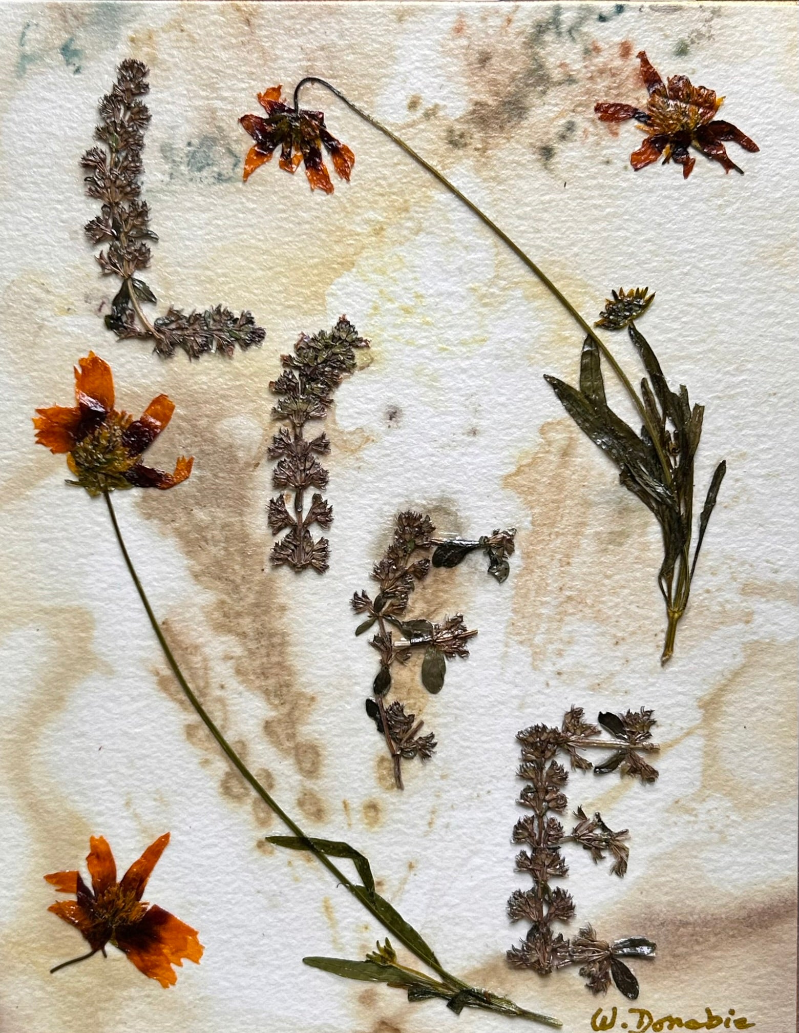 Medium: Pressed Flowers on eco printed Paper mounted on Canvas