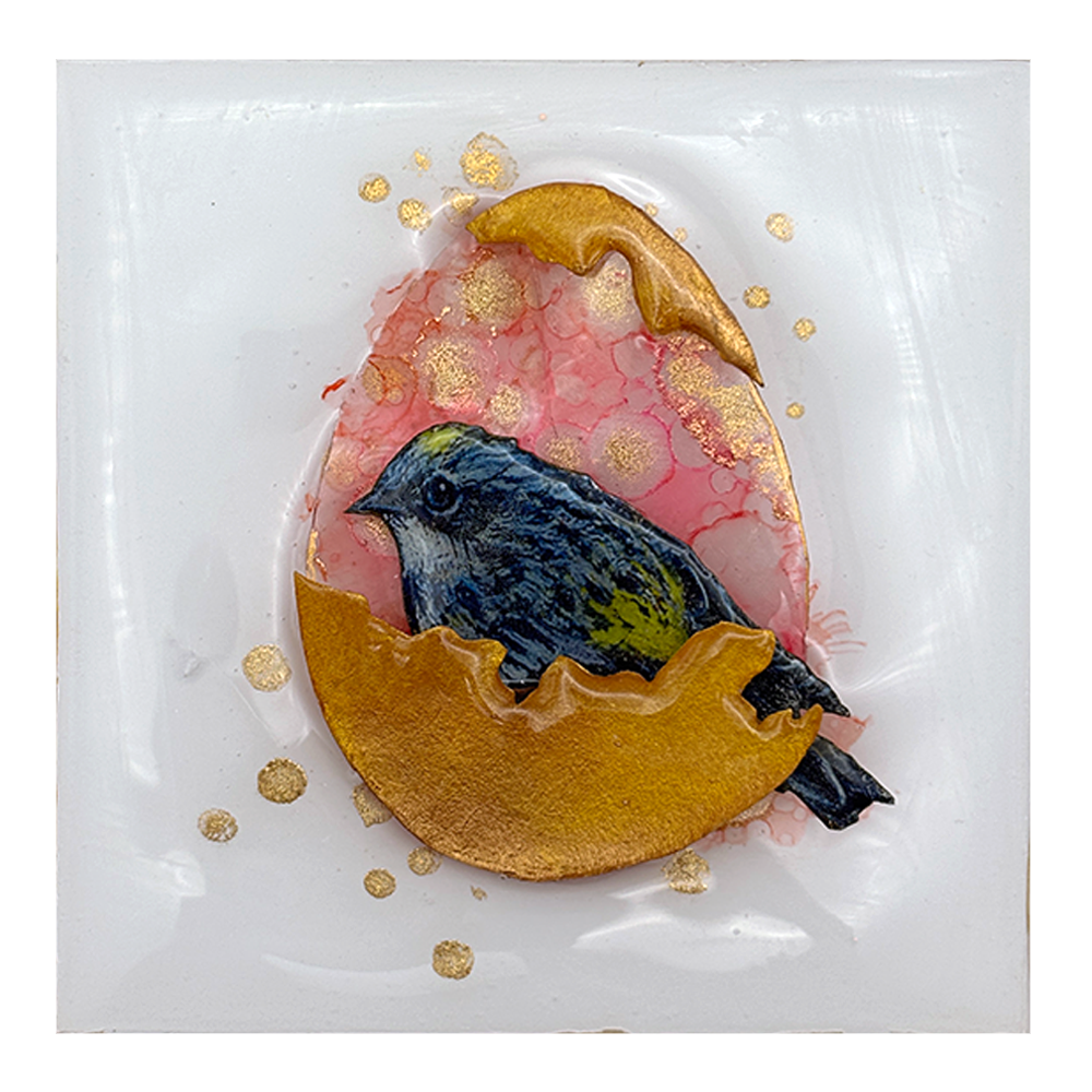 Medium: Digital Print, paper, yupo, alcohol inks, resin, on cradled panel