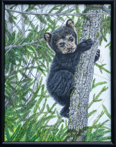 Acrylic on Canvas. Framed with a black wooden frame.  Photographed in Algonquin Park.
