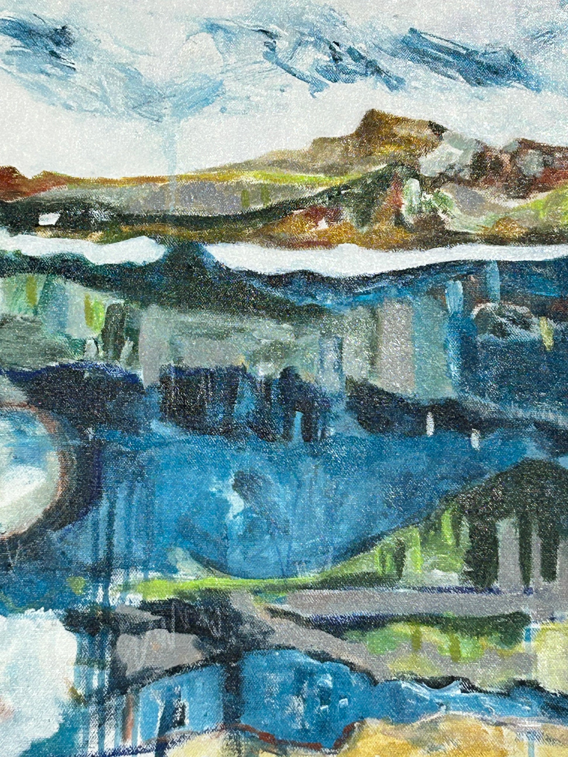 I paint to remember moments or places in time with its attached emotions. Recalling that experience reminds me of the joy while traversing a landform, or simply being humbled. Singularly, or within a landscape setting, my strong connection to the stalwart sentinel tree forms, past and present, lining my street or graciously grow in my backyard remain life-giving. My chosen medium, acrylic paint becomes the narrative for intuitive investigation. It’s through this medium that I unveil gestural compositions that become guideposts for my colour choices. Adding layers of line work with stick media on the canvas, I engage in a performance of responsive recollection. Brush-worked textures blend to add depth to recreate the essence of these places and forms. I view my canvas as a container for these intrinsic experiences. I’m inviting the viewer to wander around my responsive recollections to make connections to their own memory of place.