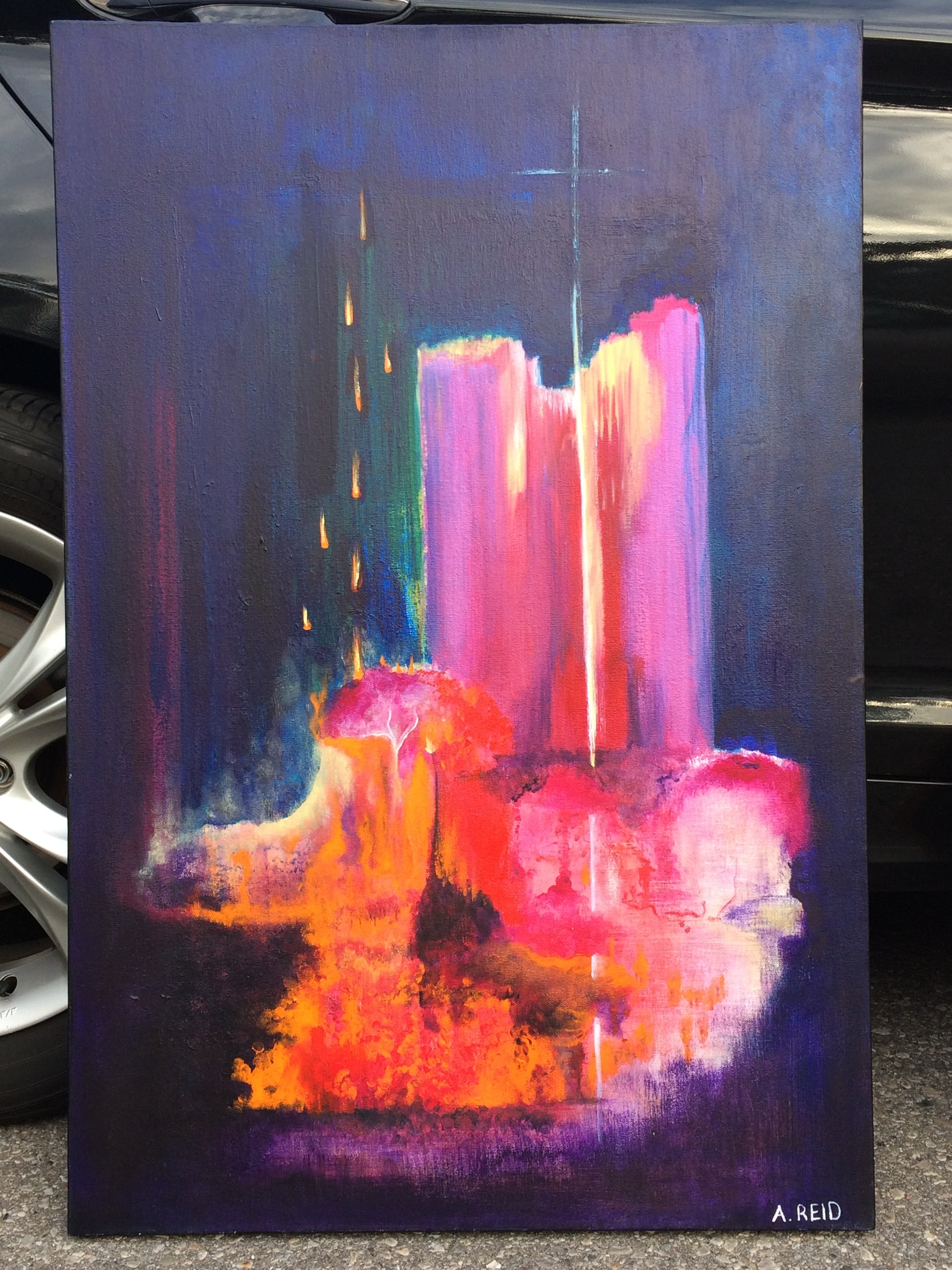Seed of the Woman is a flare of colour and courage. Electric fuchsia, coral, and embered gold rise from a deep indigo ground, forming luminous columns and a slender seam of light that reads as threshold, path, possibility. Soft veils meet decisive verticals; poured passages bloom into tree-like shapes, suggesting growth from something small yet potent. Glazing and scumbling create a tactile surface that shifts with the light, while warm–cool contrasts anchor a strong value structure.