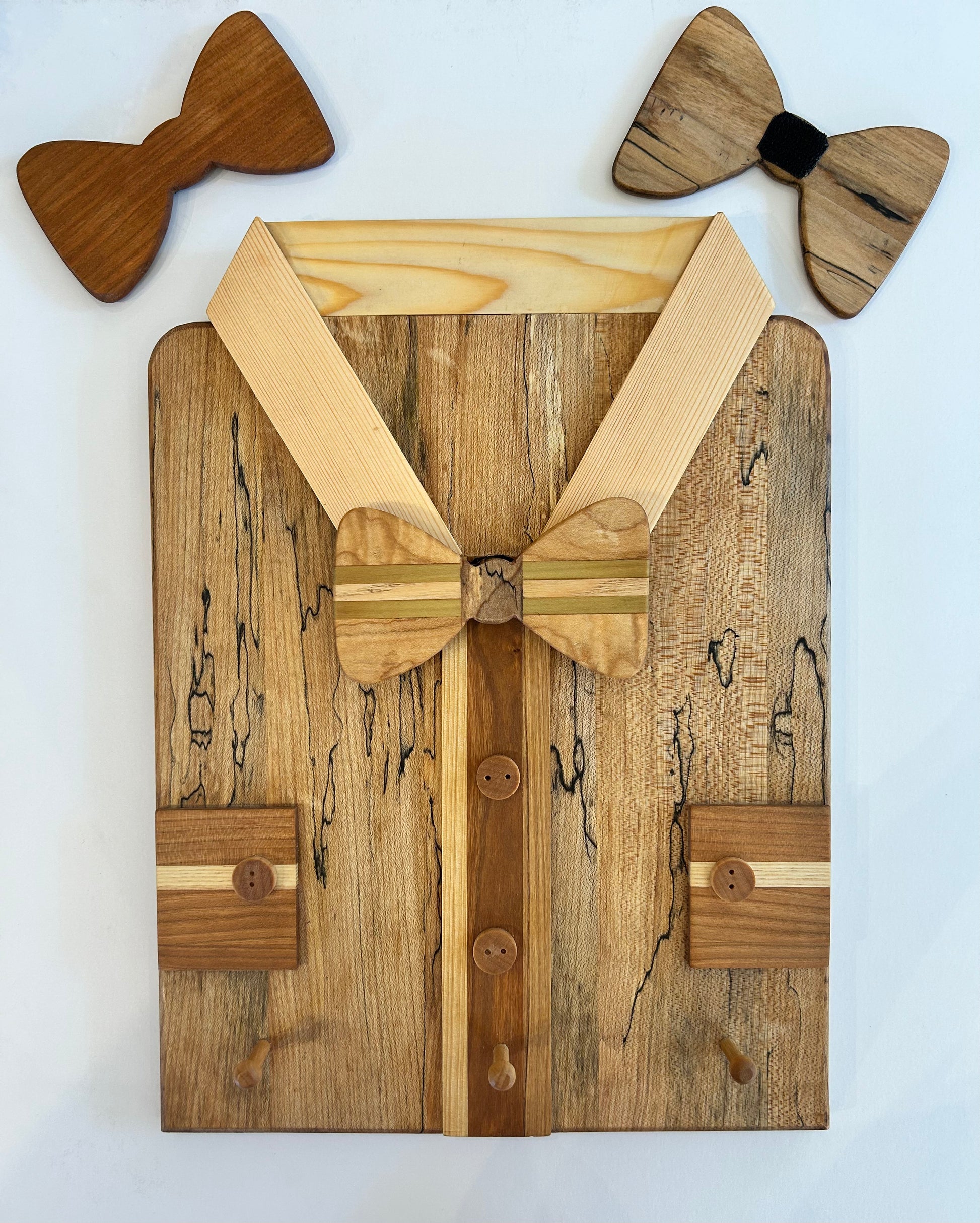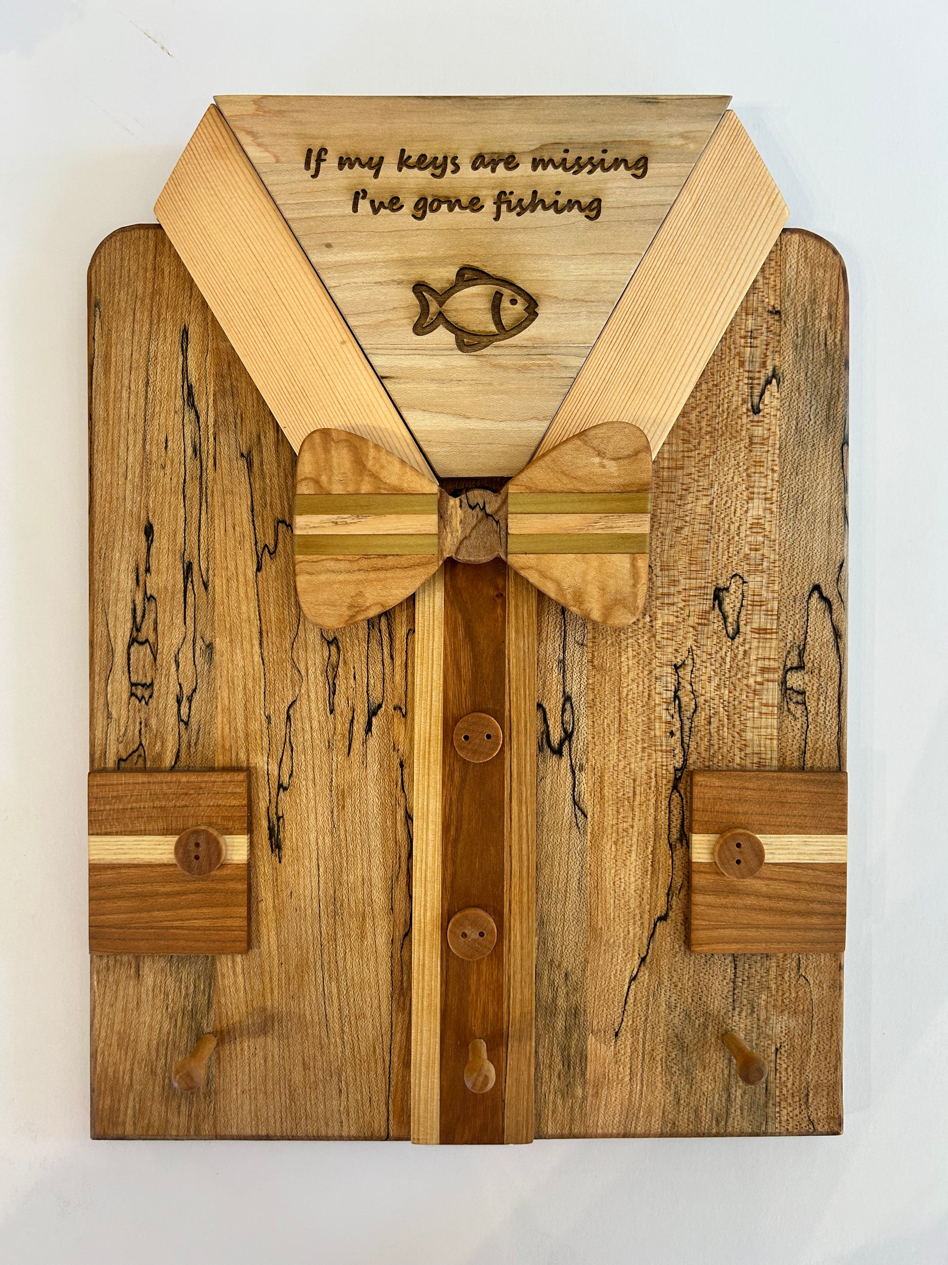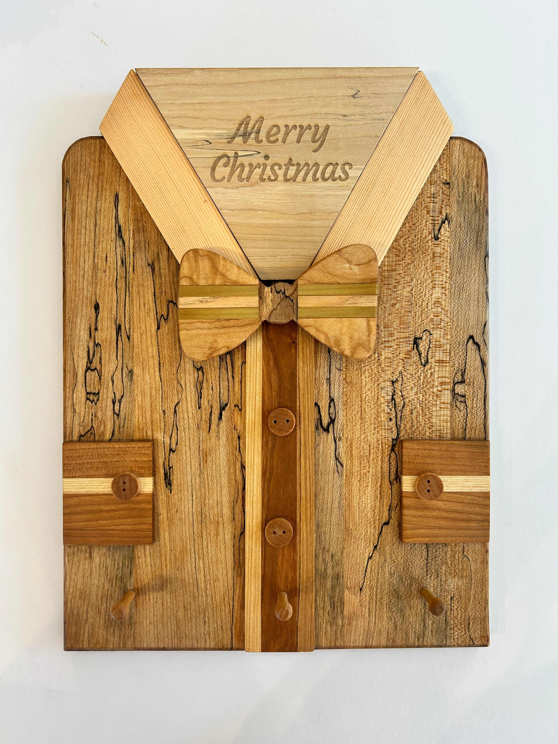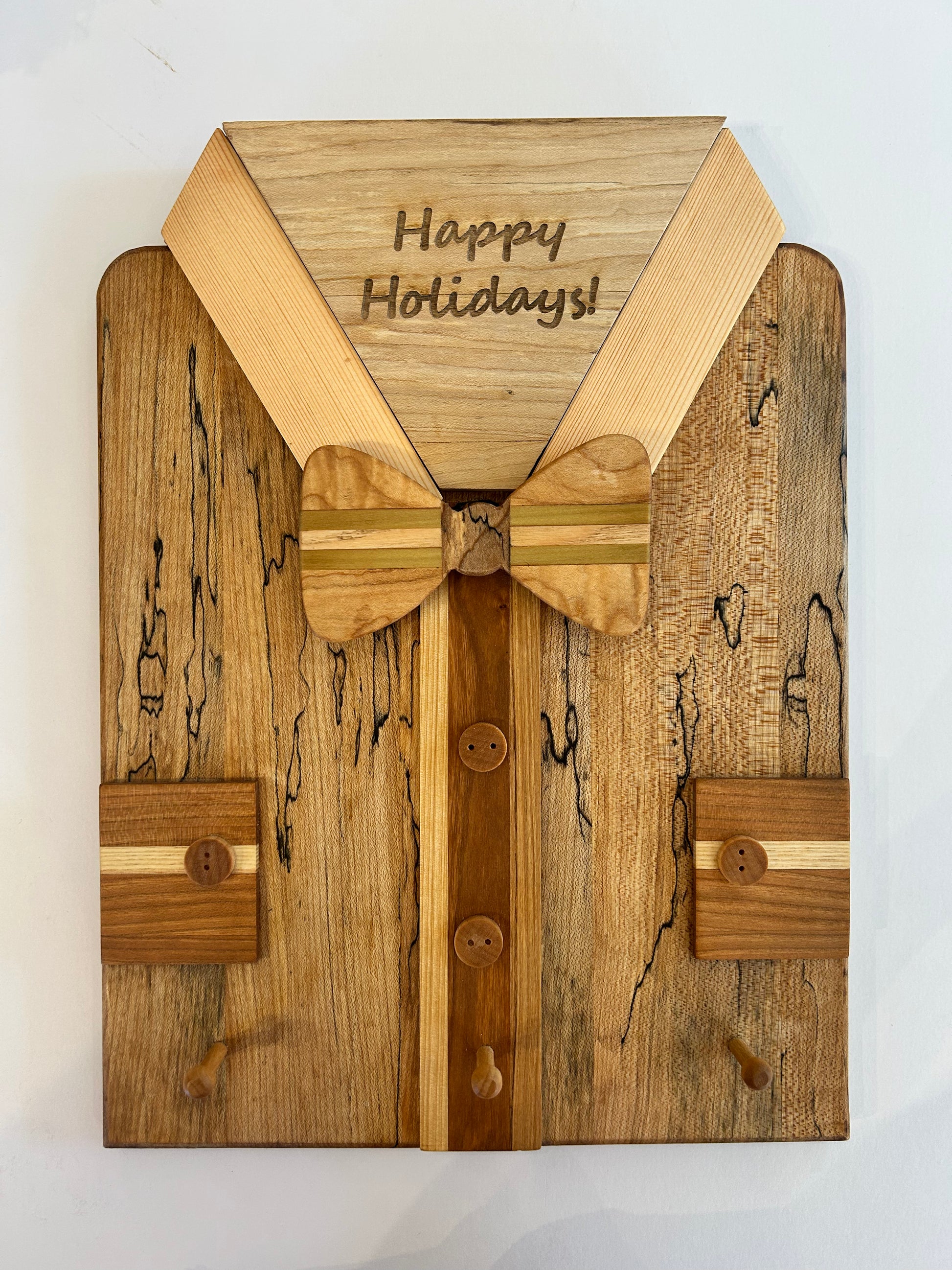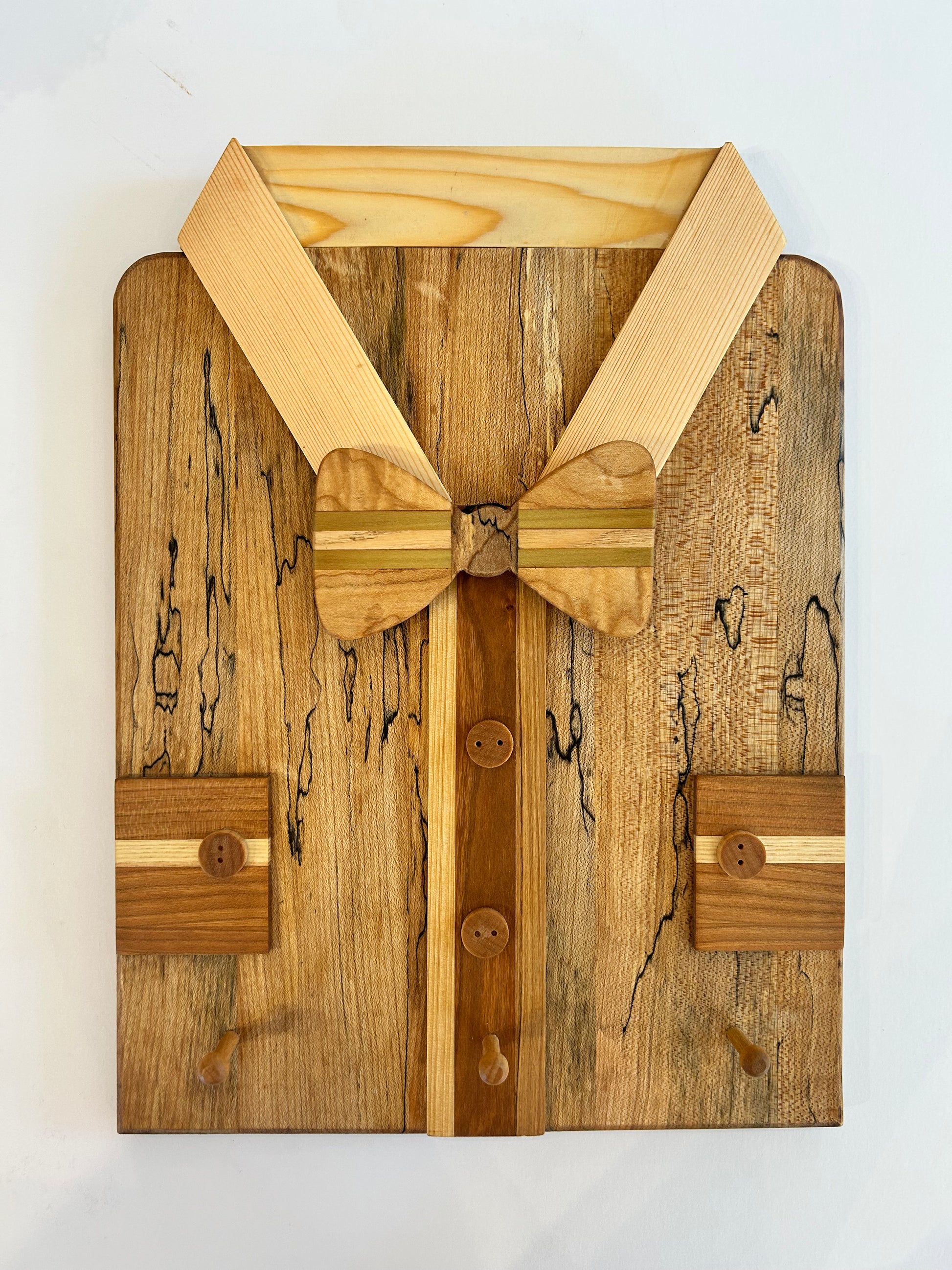 Customizable wooden key hook shaped as a shirt.