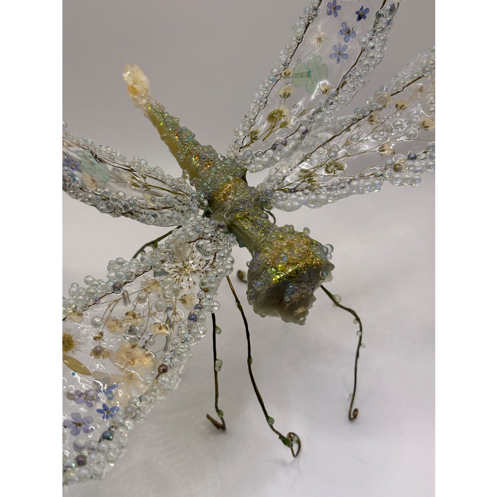 Medium: Resin, resin shells, wire, Citrine, dried flowers, glass bubble beads, mica powders