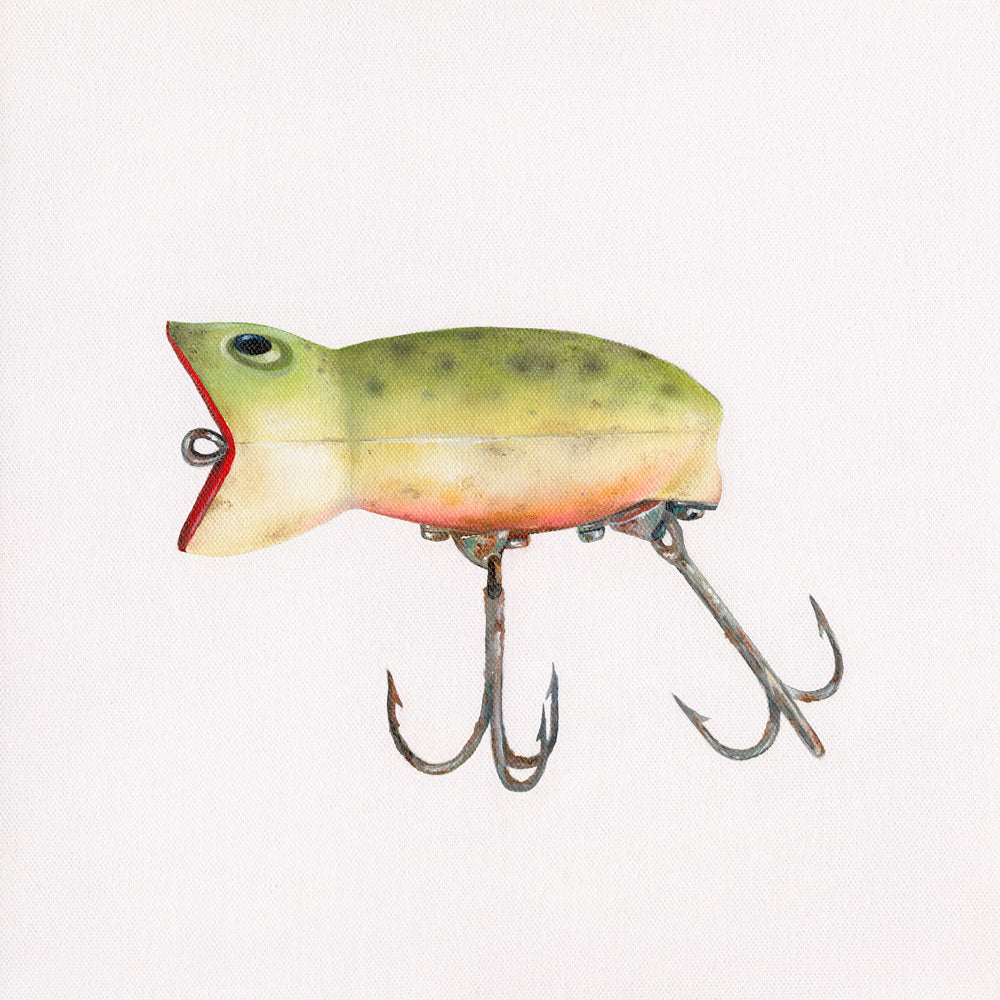 My late uncle was a passionate fisherman who frequently embarked on early morning outings. This vintage lure still resides at his cottage, evoking memories of summer days by the lake.
