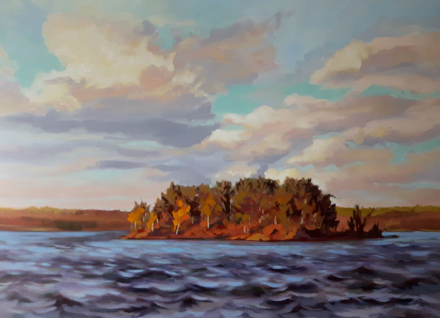 oil painting on gallery canvas with the edges painted around the canvas for a finished look.