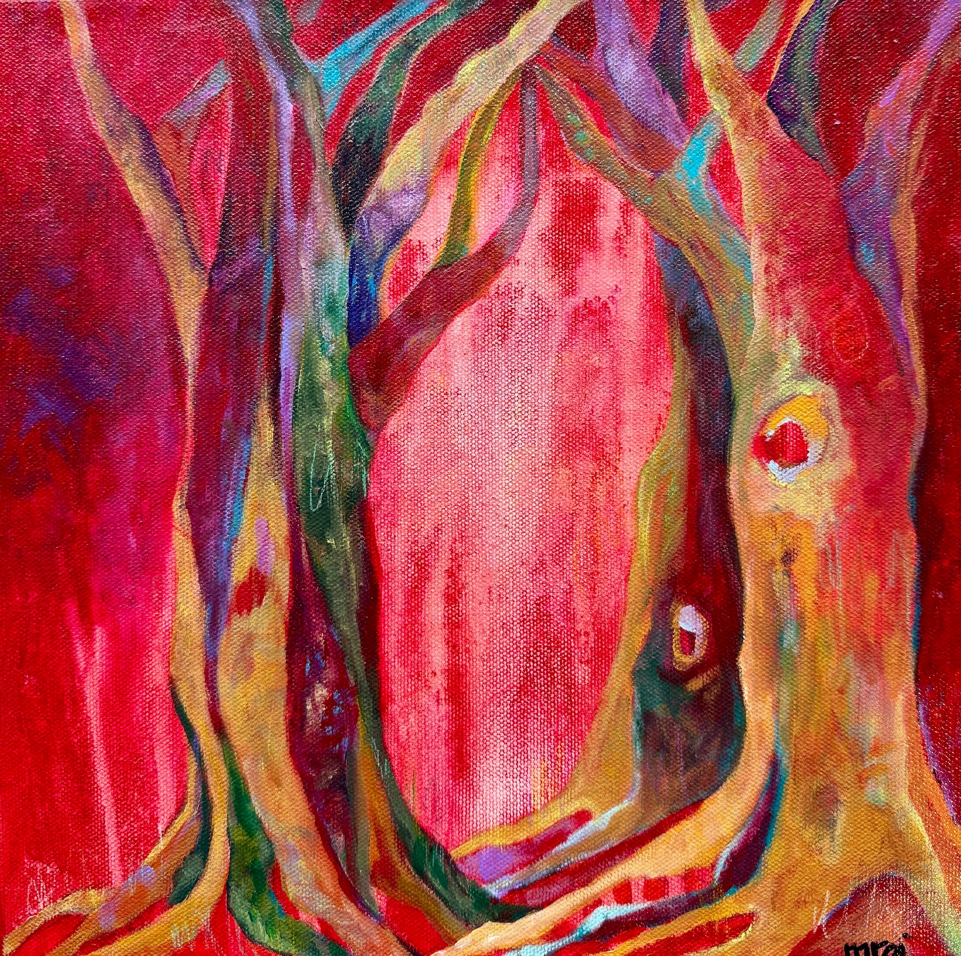 Medium: Acrylic on canvas painting, framed in natural wood ready to hang.